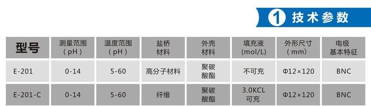 pH指示電極技術參數(使用時需與參比電極配套使用)