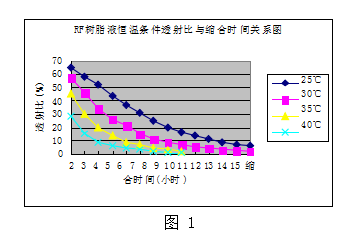 RF樹脂液恒溫條件透射比與縮合時間關(guān)系圖